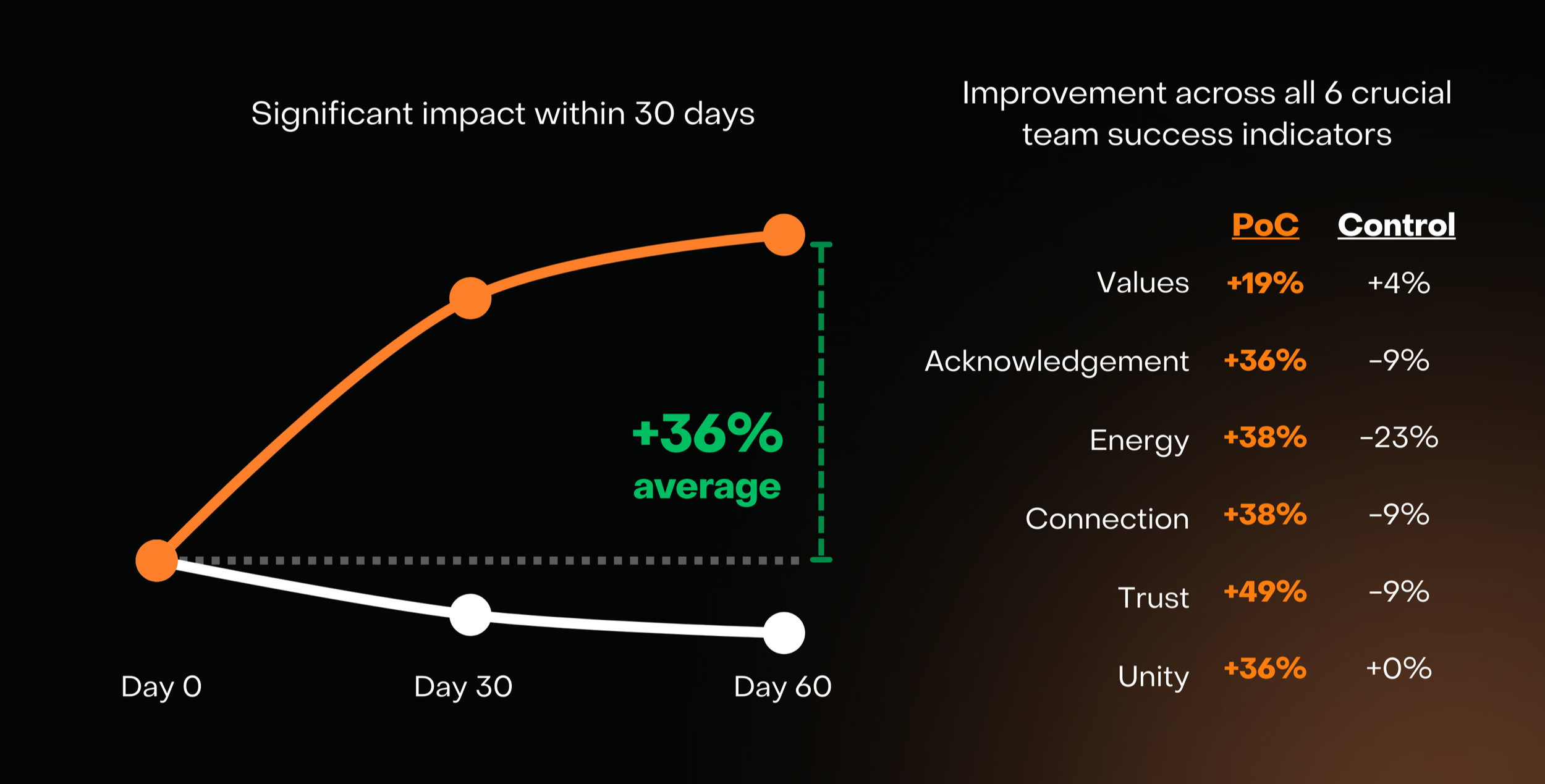 A measurable uplift in trust, connection, and energy in just two months, while a comparable control group declined